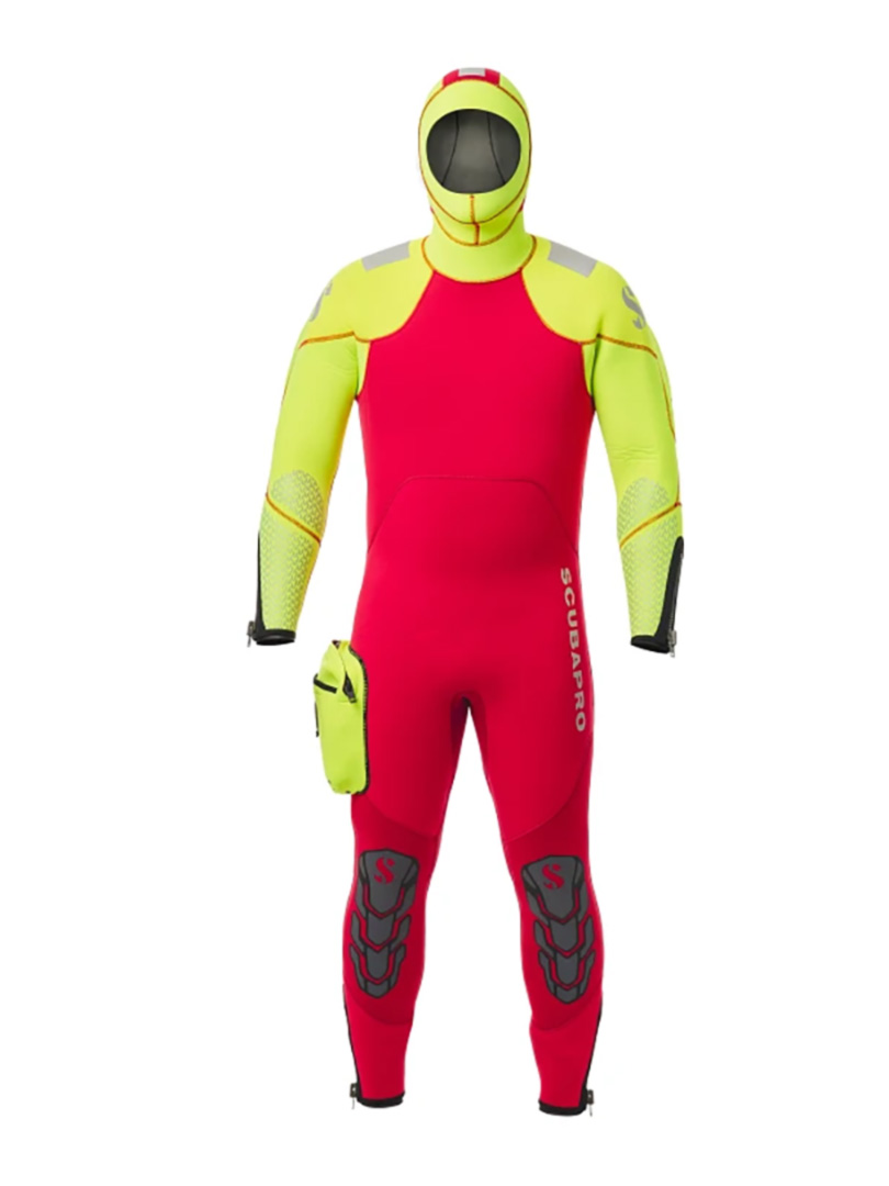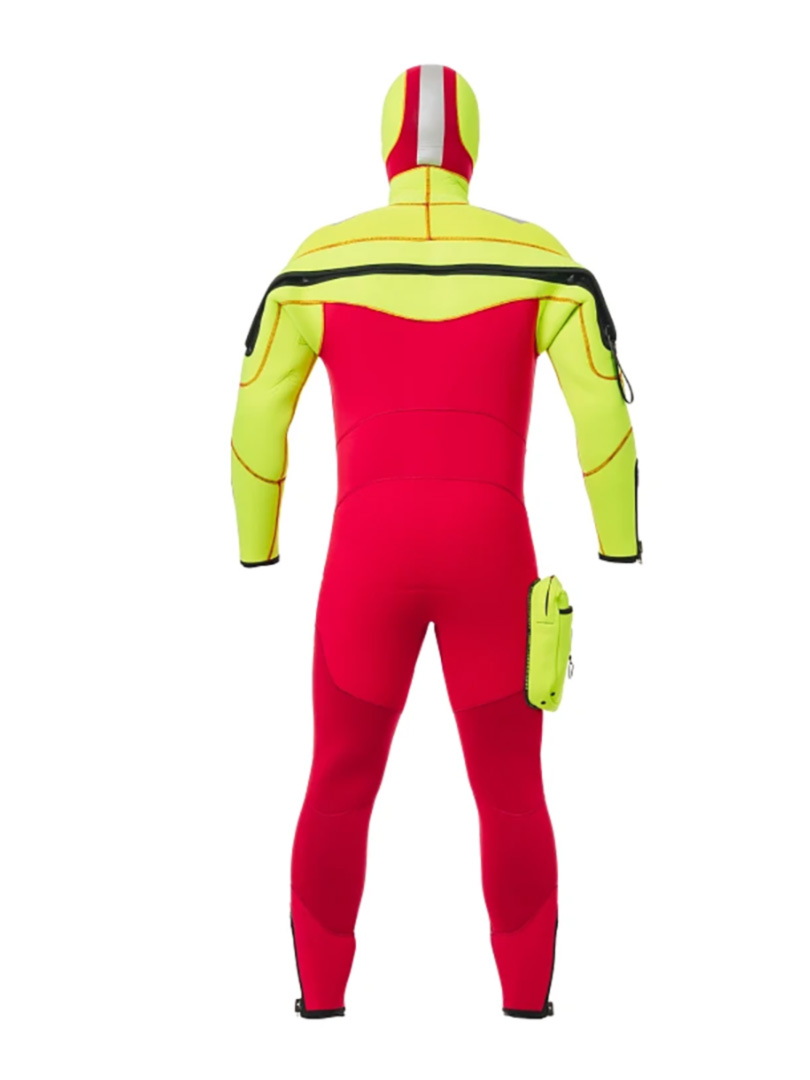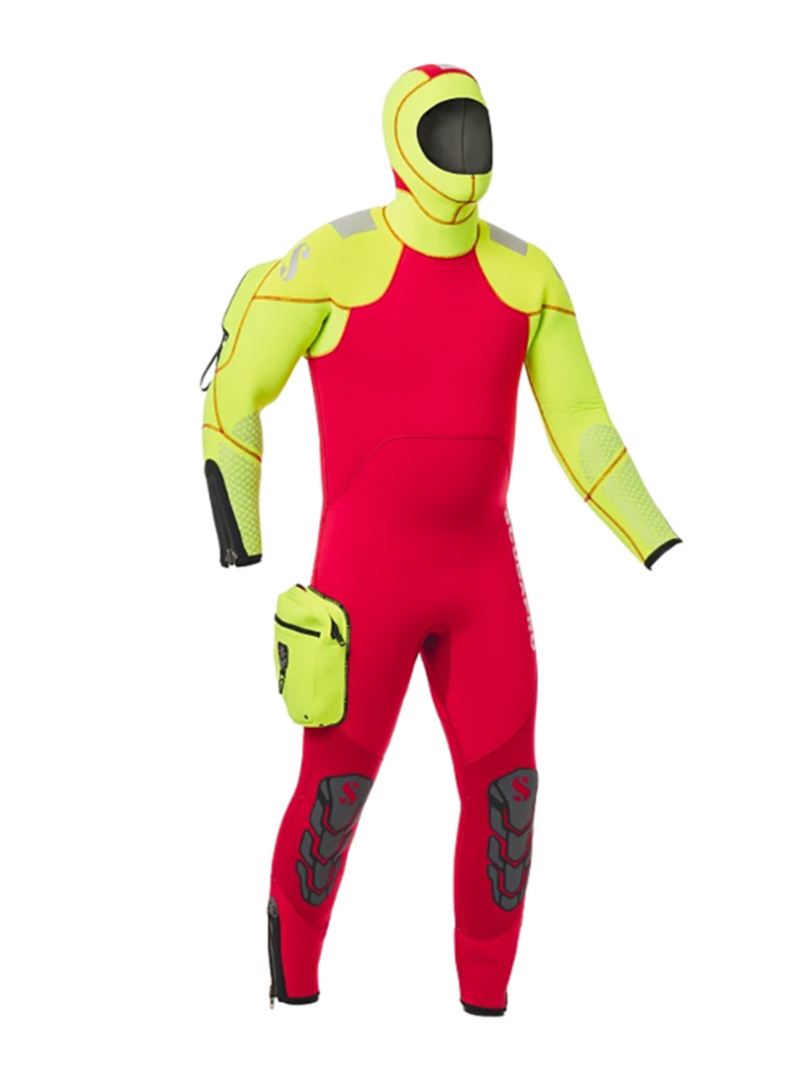 Az élénk színű félszáraz NovaScotia SAR (Search and Rescue) ruha meleg és száraz érzetet biztosít, miközben a hátsó vízálló YKK Aquaseal Vislon cipzár gyakorlatilag kiküszöböli a víz bejutását. A rugalmas, plüss béléssel ellátott 7,5/6,5 mm-es vastagságú neoprén segíti a búvárok könnyű mozgását a vízben.A combrészen 1 db YKK cipzáras zseb található a kiegészítők és szerszámok számára. A vállakon és a csuklyán fényvisszaverő panel találhatók, térdrésze erősített.